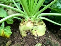 こちらが↓「てん菜」です。ご存知でしたか?ちょっと丸い大根のような見た目をしていることから別名「砂糖大根(サトウダイコン)」とも呼ばれていますが、実は大根ではなくほうれん草等と同じ「ヒユ科」の仲間です。