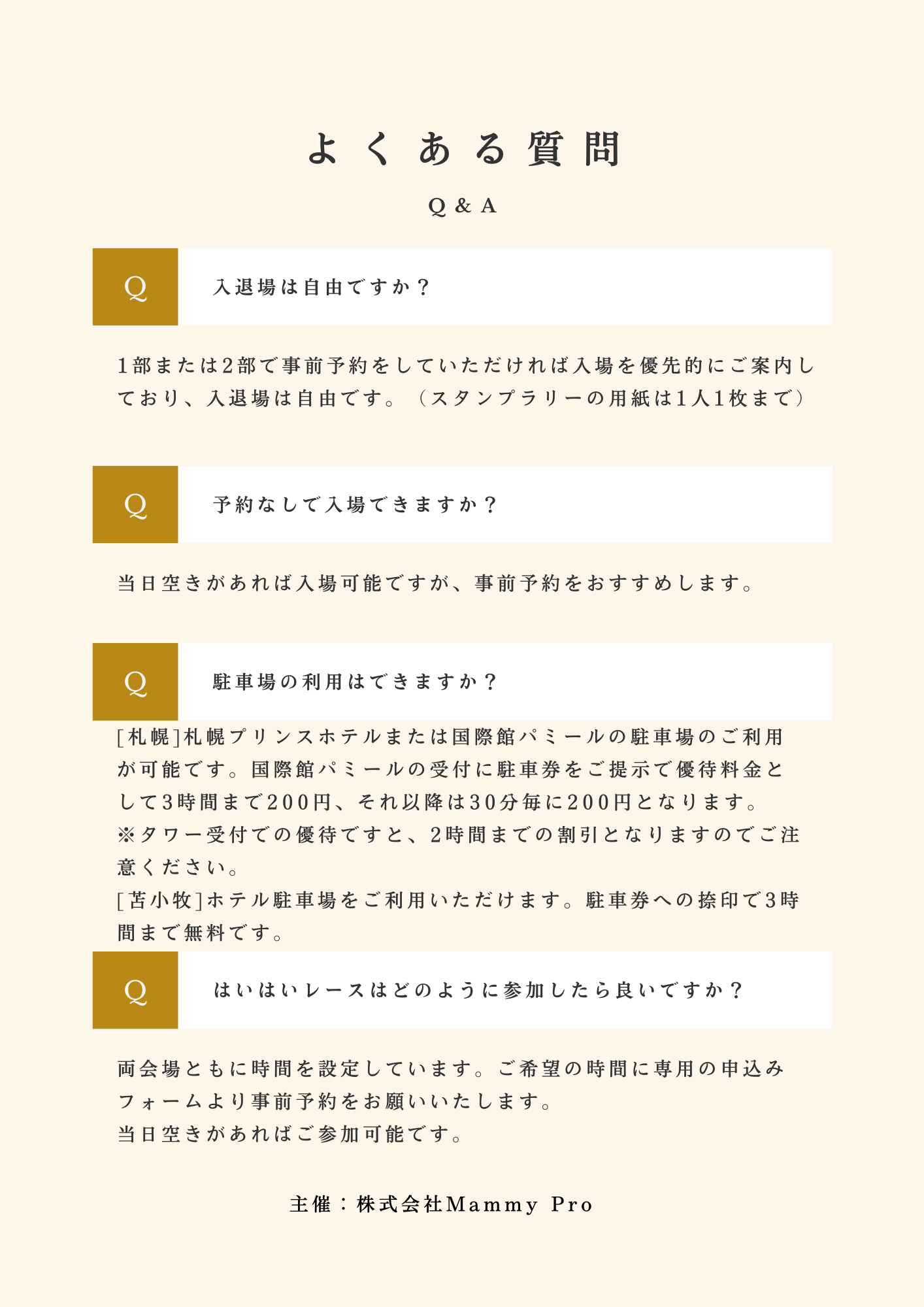 託児について | 託児は行っておりませんのでお子様と一緒に会場をおまわりください |